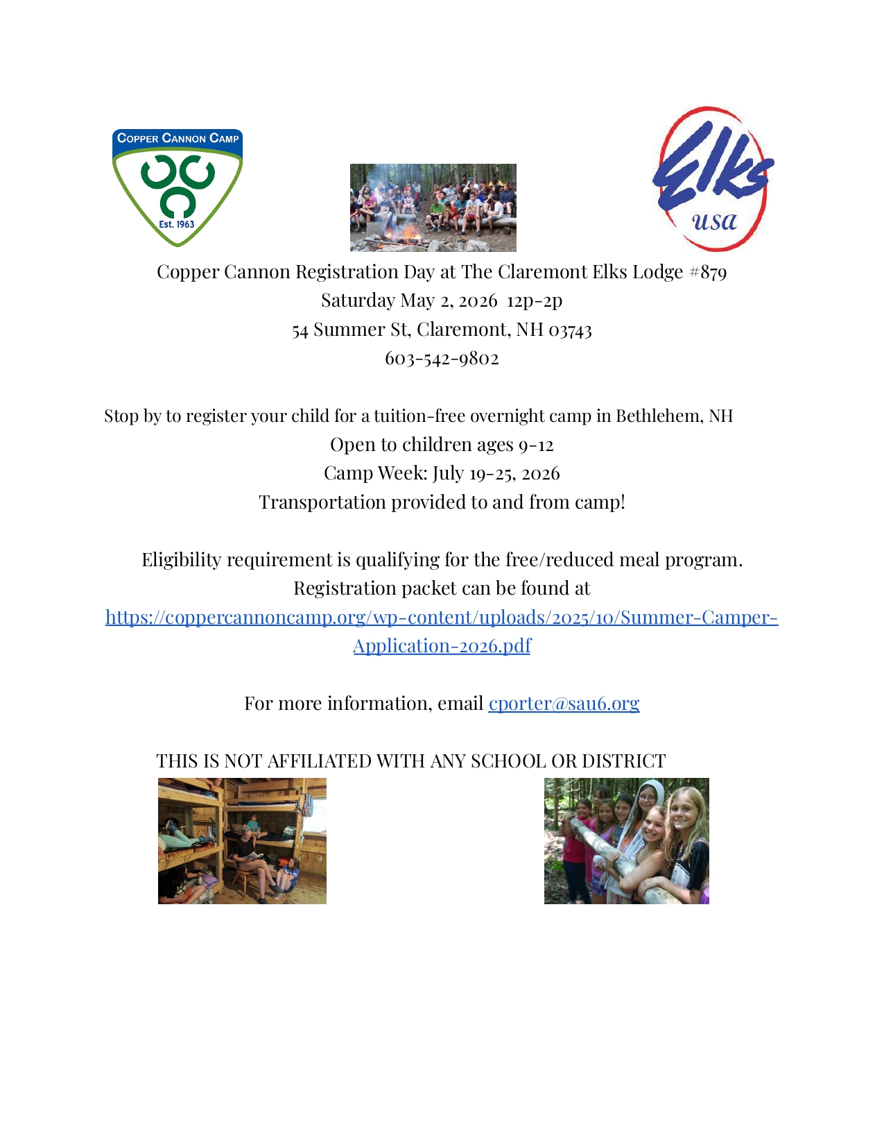 Child Find Developmental Screening The screening will take place on April 13th, 2026, at Disnard Elementary School, located at 160 Hanover St, Claremont, NH. This screening is for children ages 3-5...